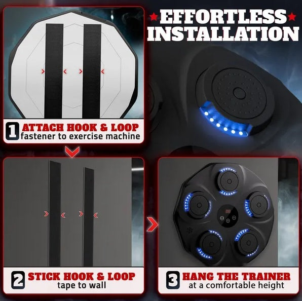 Bluetooth-Enabled Boxing Wall Punching Pad: Our boxing music workout machine connects via Bluetooth, letting you train to your favorite tunes while cool lighting effects enhance the workout immersion
